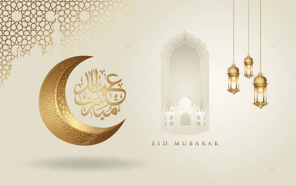 Eid Mubarak Arabic Calligraphy Design With Lantern 1127238 Vector Art At Vecteezy from static.vecteezy.com