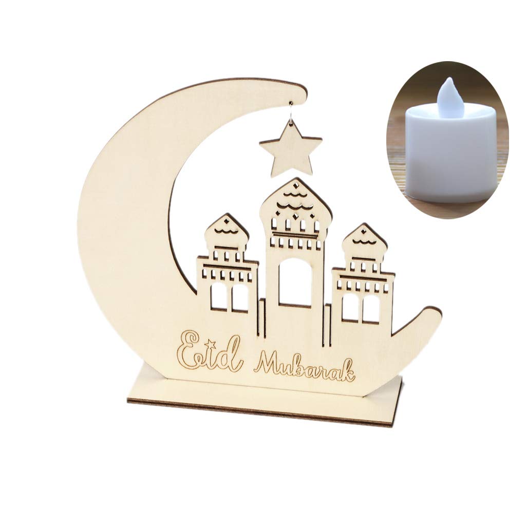 Tlymopukt ramadan lamp,wooden eid mubarak diy ornamentseid, mubarak decorations for home eid plates,ramadan eid decorations moon ornament led night light no battery moon decor home party supplies.